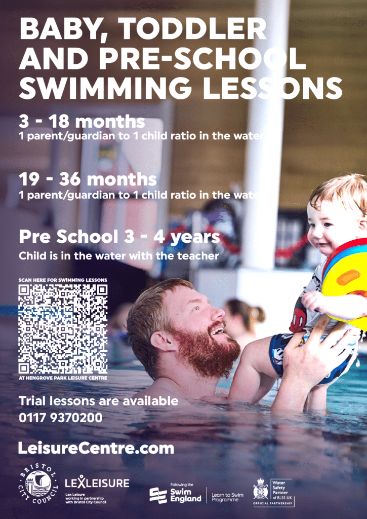 Hengrove Park Leisure Centre is offering swimming lessons for babies, toddlers and pre-school children aged 3 months to 4 years, following the Swim England Learn to Swim Programme.