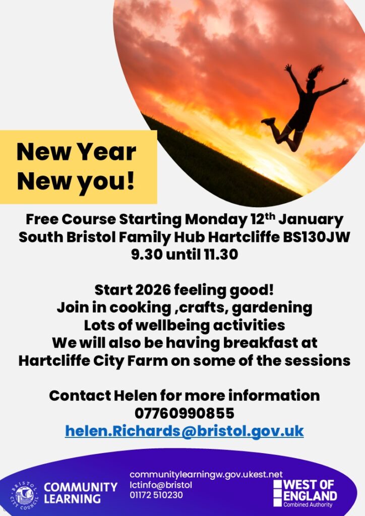 This is a wonderful opportunity for parents and carers in the Hartcliffe area to invest in their own wellbeing at the start of the new year. The course is completely free and runs over several weeks, allowing participants to develop new interests and build connections with others in their community.
