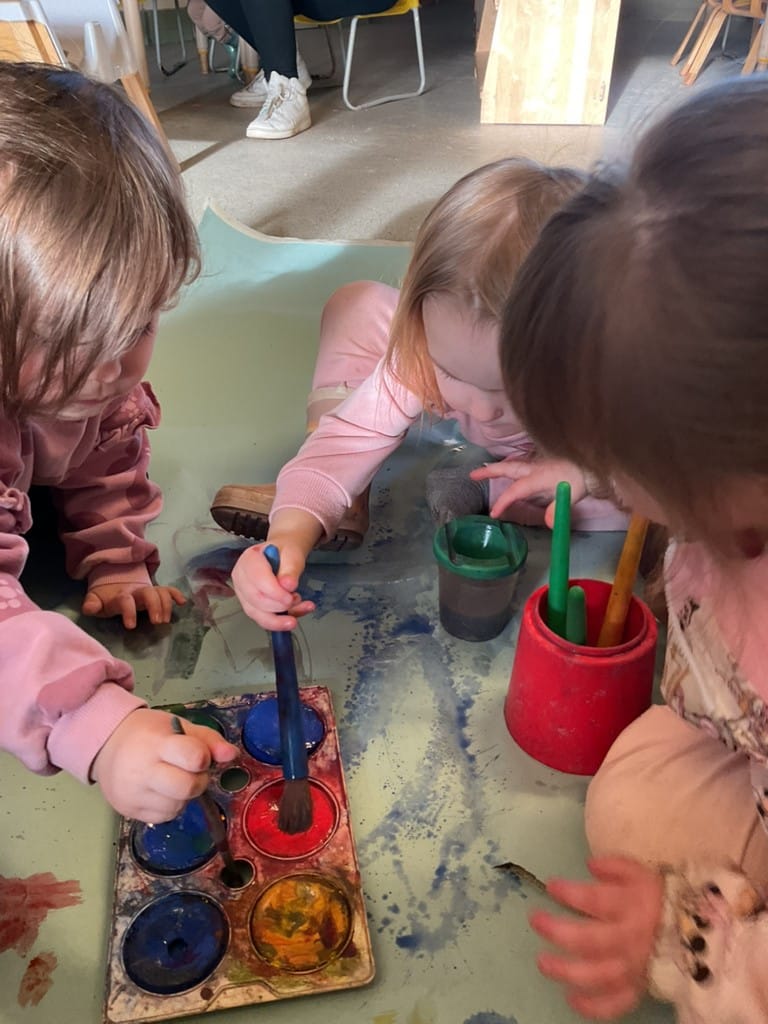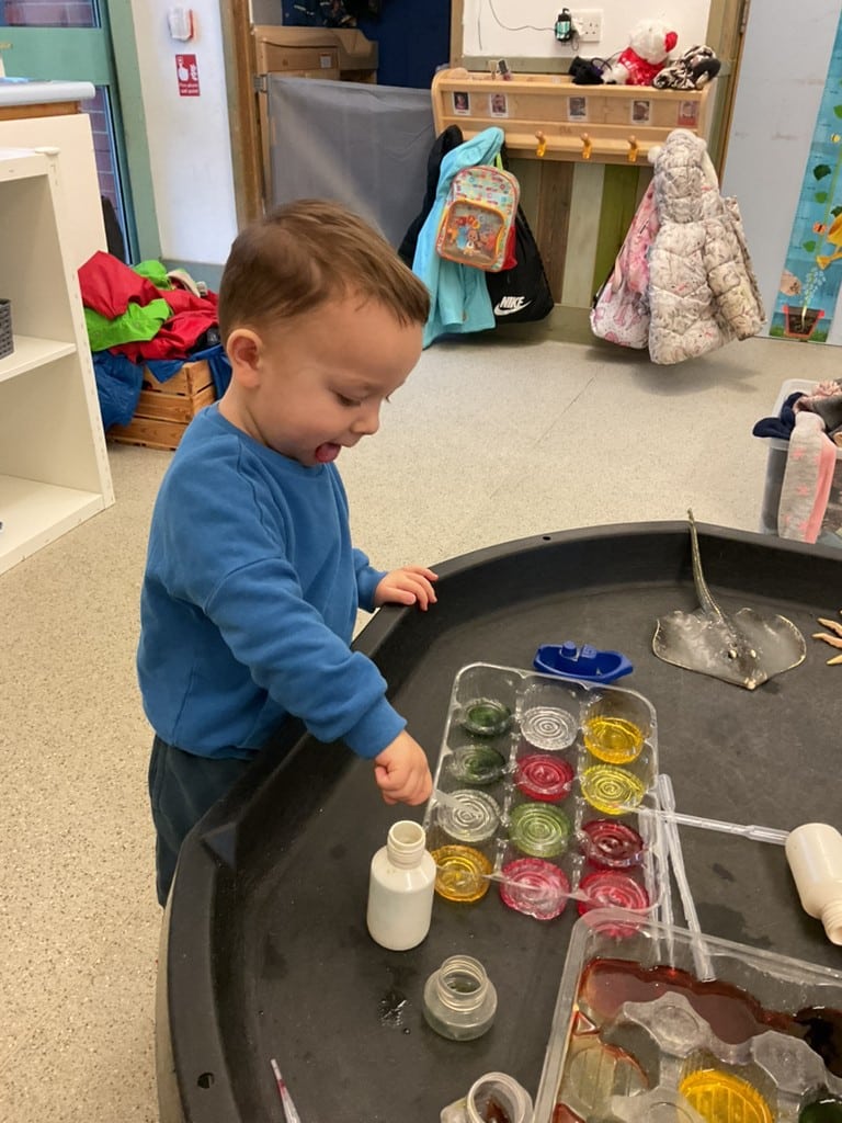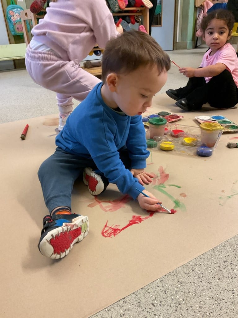 Cherry Room has been exploring paint using different tools including our bodies, starting to give meaning to marks we make whilst developing early mark-making skills. The children have been learning about mixing colours together to make new ones, discovering how primary colours combine to create different shades.
