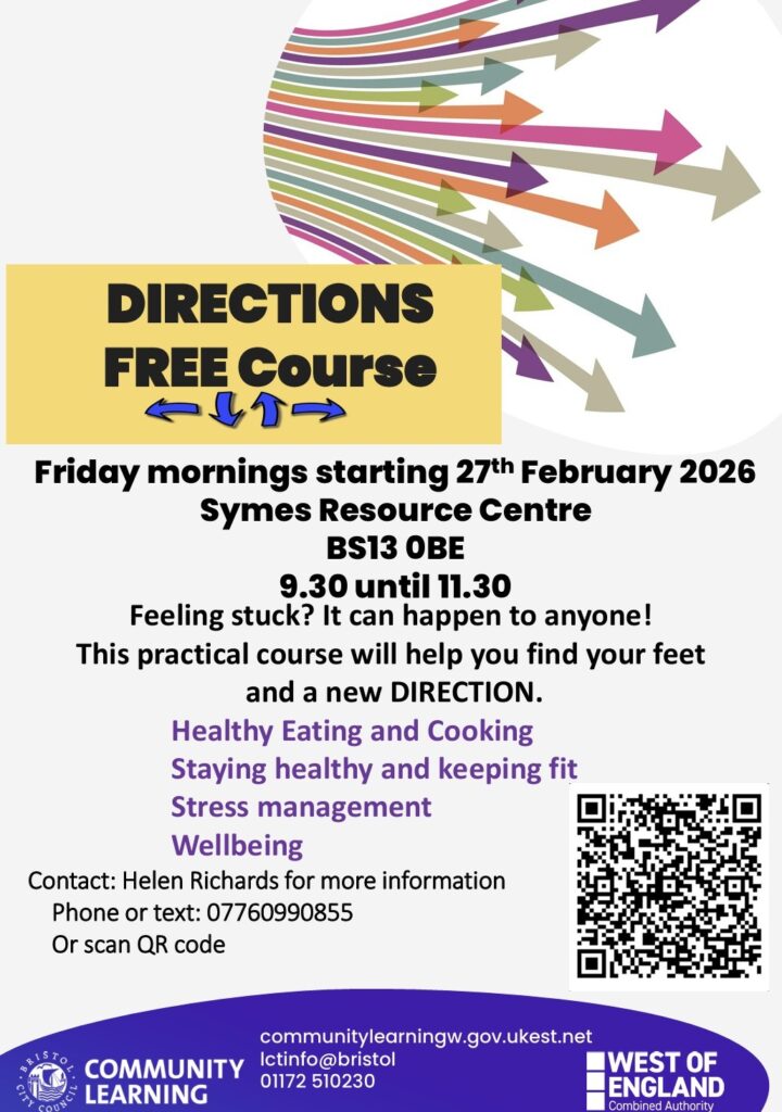 A free Directions course is starting on Friday mornings at Symes Resource Centre in Hartcliffe, designed to help parents and carers who may be feeling stuck and looking for a new direction.