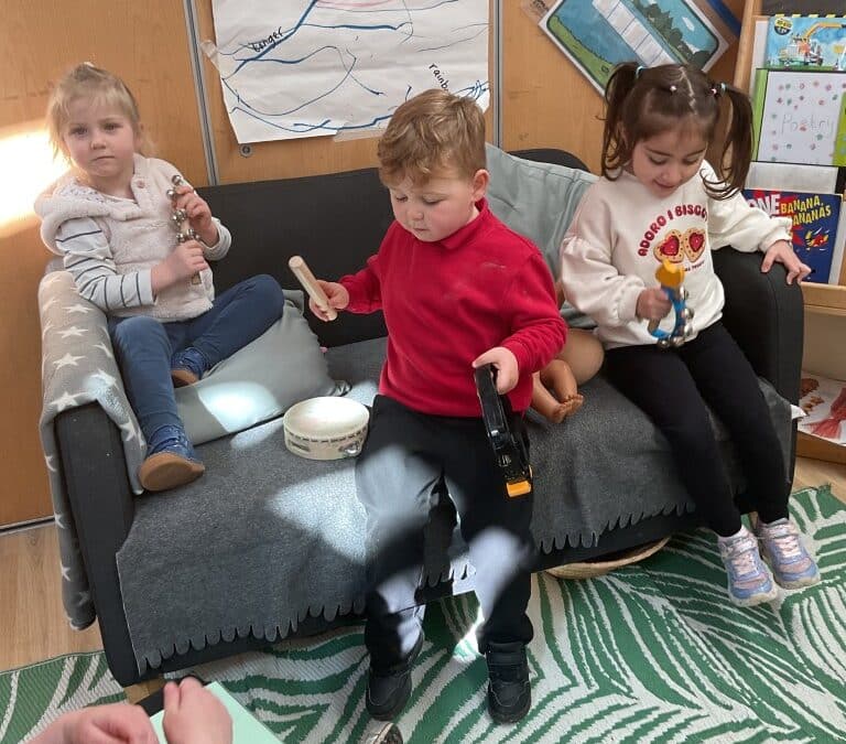 Musical experiences like this support the Early Years Foundation Stage (EYFS) by encouraging children’s listening skills, coordination and confidence. Music also offers valuable opportunities for self‑expression and creativity within our nursery school environment.