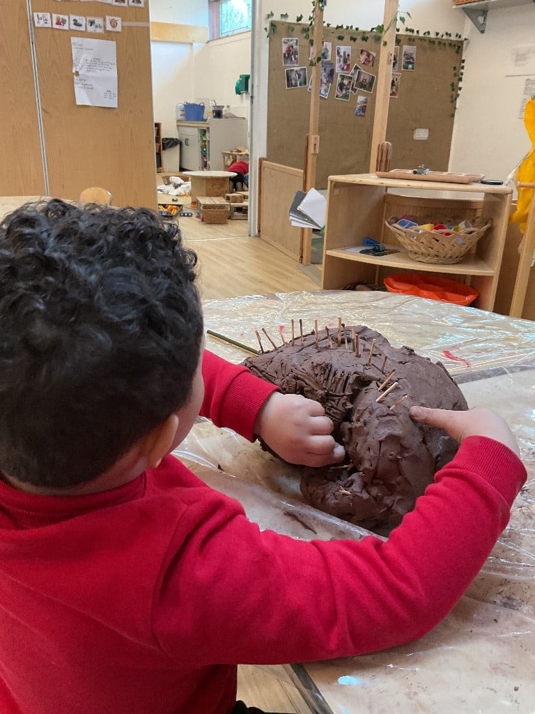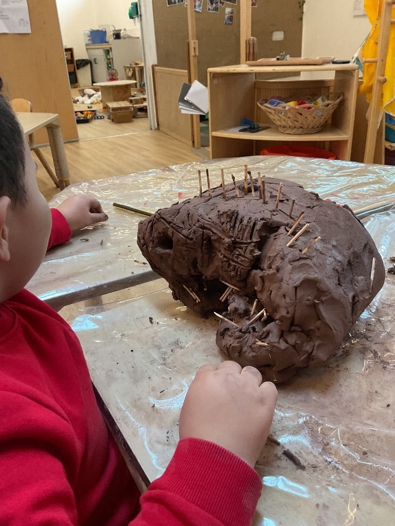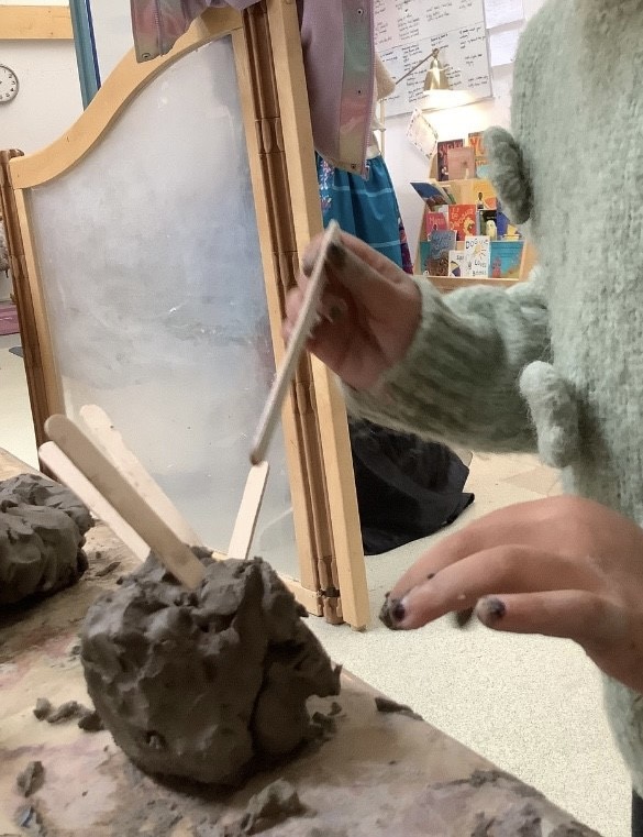 This term we are exploring making models in nursery. We will provide the children with a variety of materials and tools to explore across the term. This week we have been learning about clay – how to manipulate it with our hands, with tools and even with our feet!