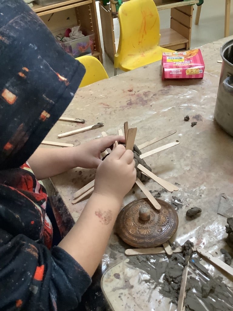 Clay is a natural substance, quite similar to mud! So it lasts for a very long time, as long as we look after it (unlike playdough which goes off rather quickly). We teach the children that there are certain things that can’t be added to it like paper, paint or glue because these materials will ruin the clay. Giving children the responsibility of caring for their resources, is a great way to foster independence and it teaches them to slow down and think about the effect they have on the environment around them.